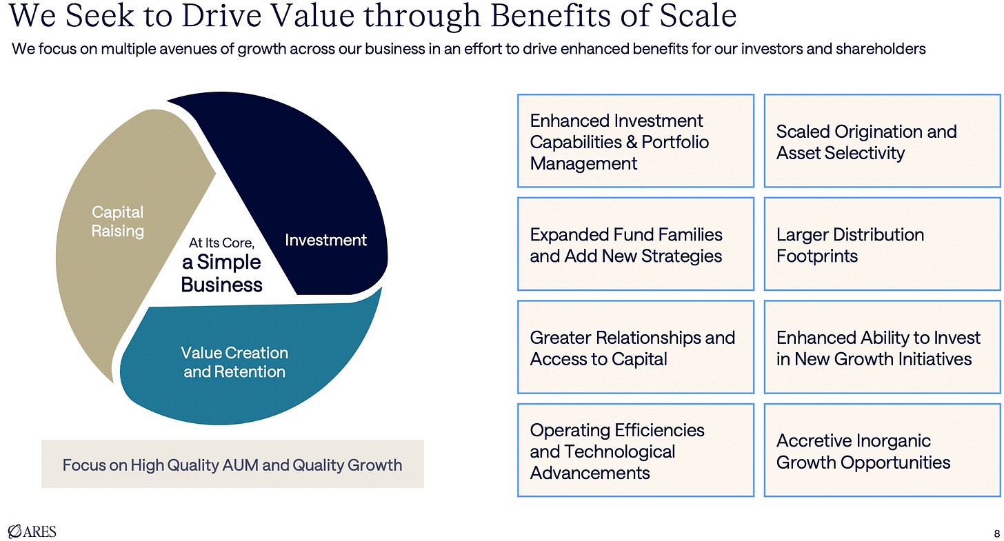 Scale matters in private markets, particularly in certain segments. Ares — and its peers — could be a case study on this topic, particularly as it relates to credit.