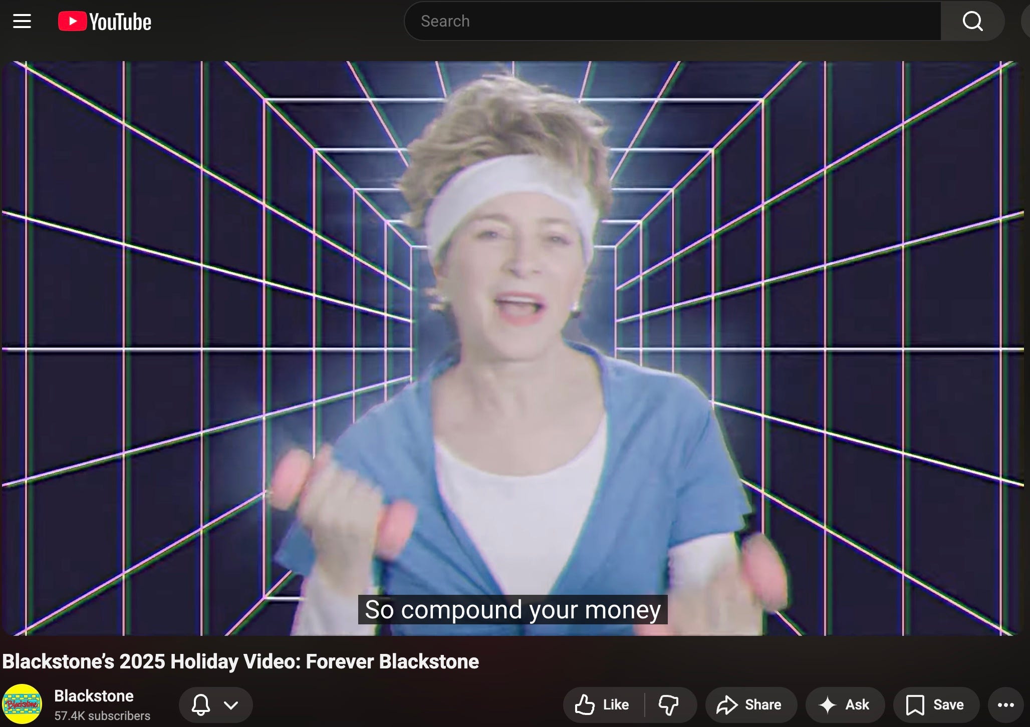 It will be interesting to see what next year’s Blackstone holiday video might tell us about the present and future of private markets.