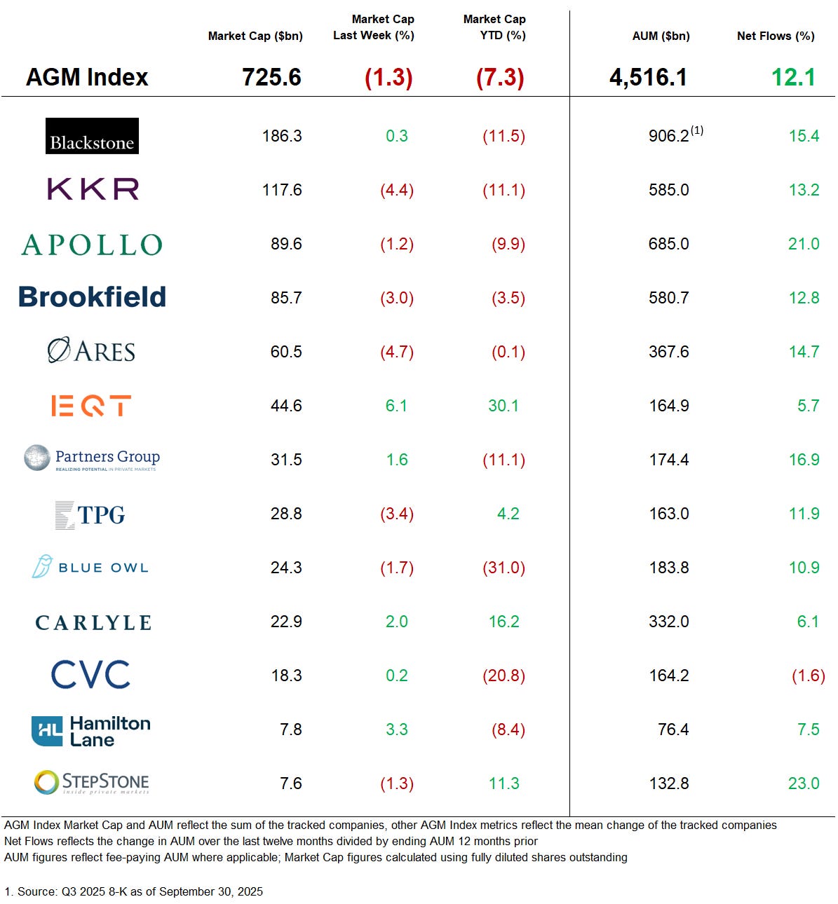 AGM has created an Index to track the leading publicly traded alternative asset managers.
