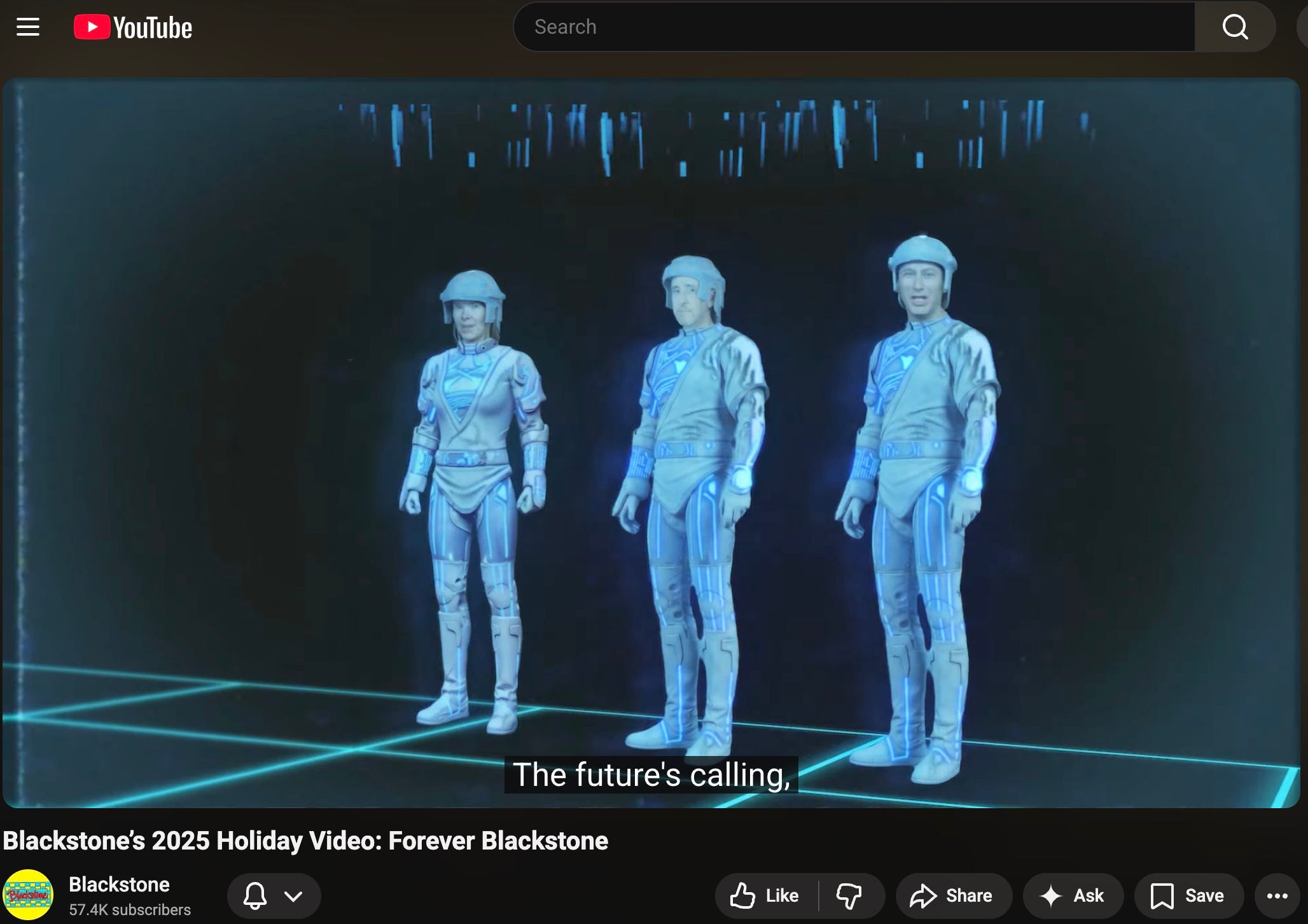 But this year’s holiday video insinuates that it’s not just financial advisors that Blackstone has in their sights.