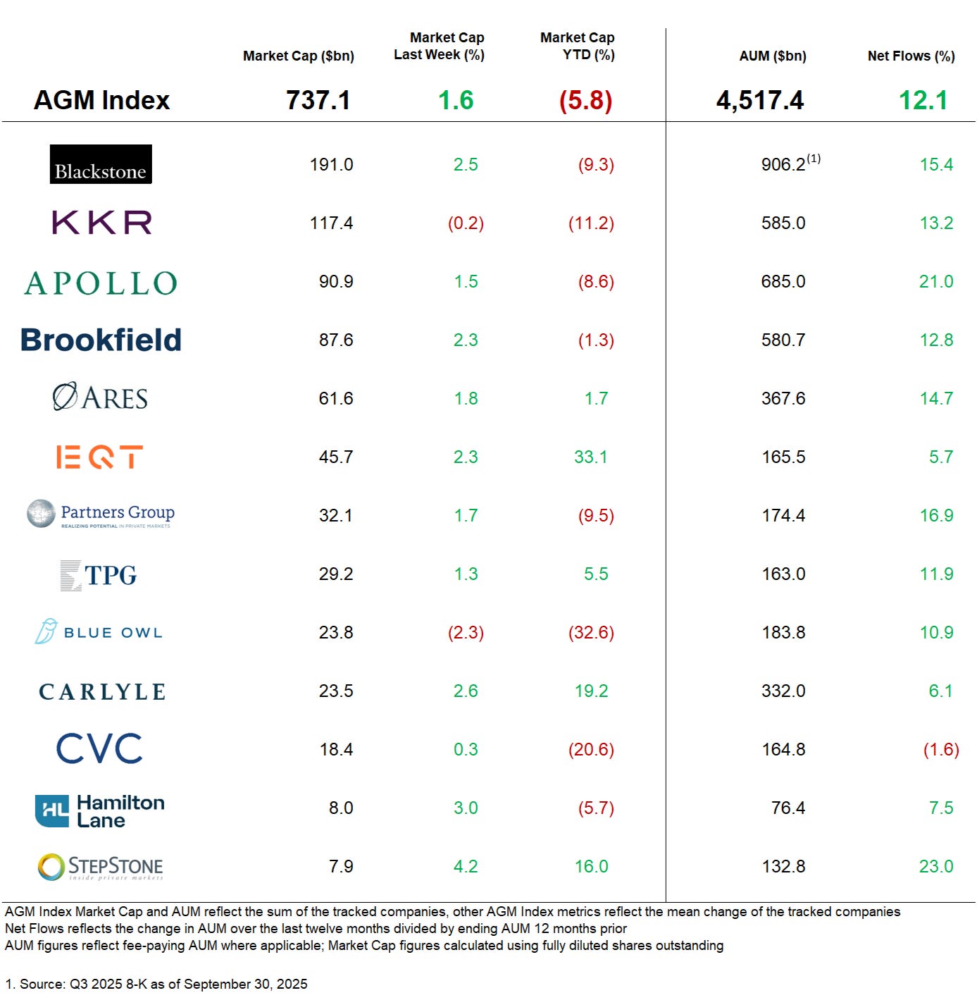 AGM has created an Index to track the leading publicly traded alternative asset managers.