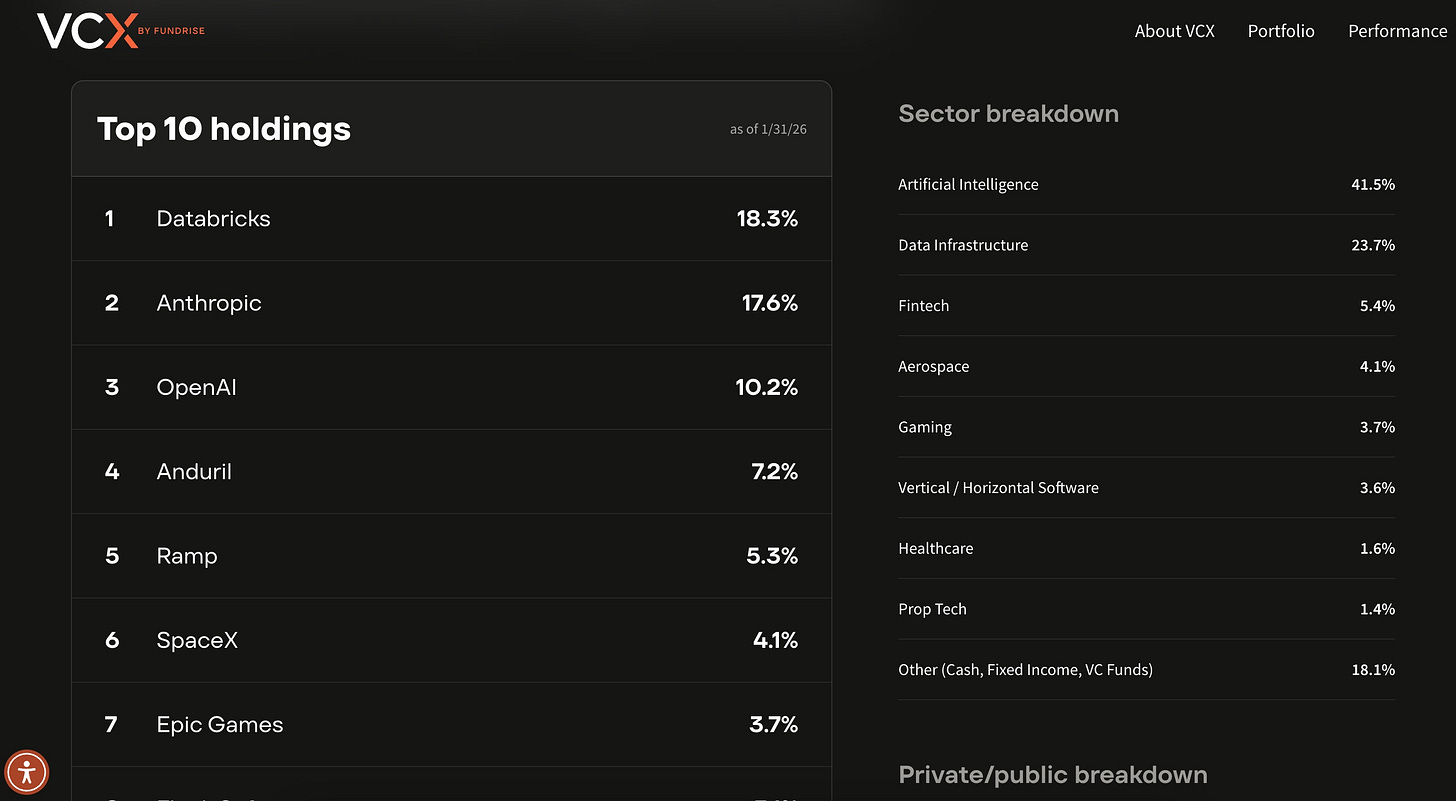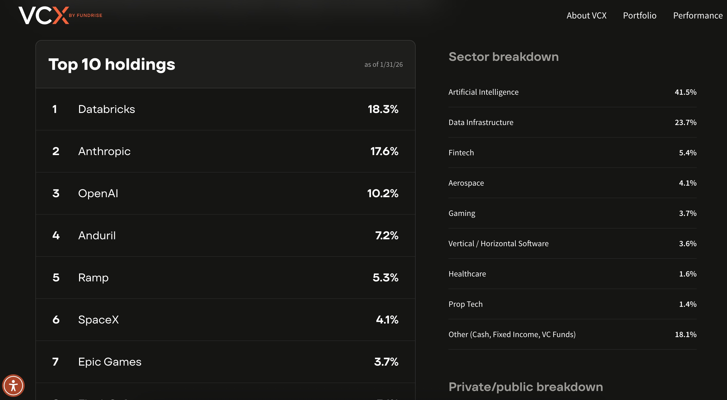 VCX has stated intentions publicly to take the fund public on NYSE on its website: “VCX intends to be a NYSE-listed public venture fund that gives you access to top private tech companies, from AI to space exploration, in a single investment.”