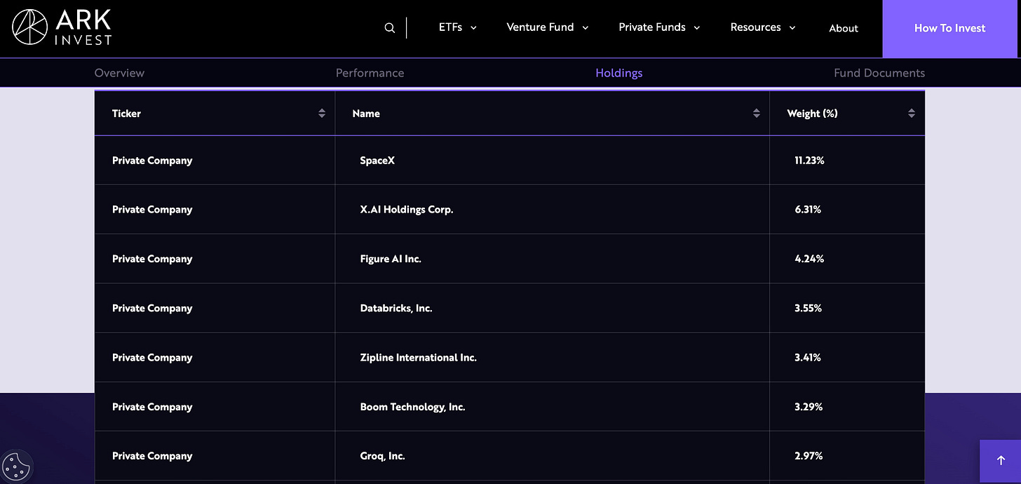 Funds like ARK’s closed-end interval fund, ARK Venture Fund, have exposure to the likes of SpaceX, xAI, and Databricks.