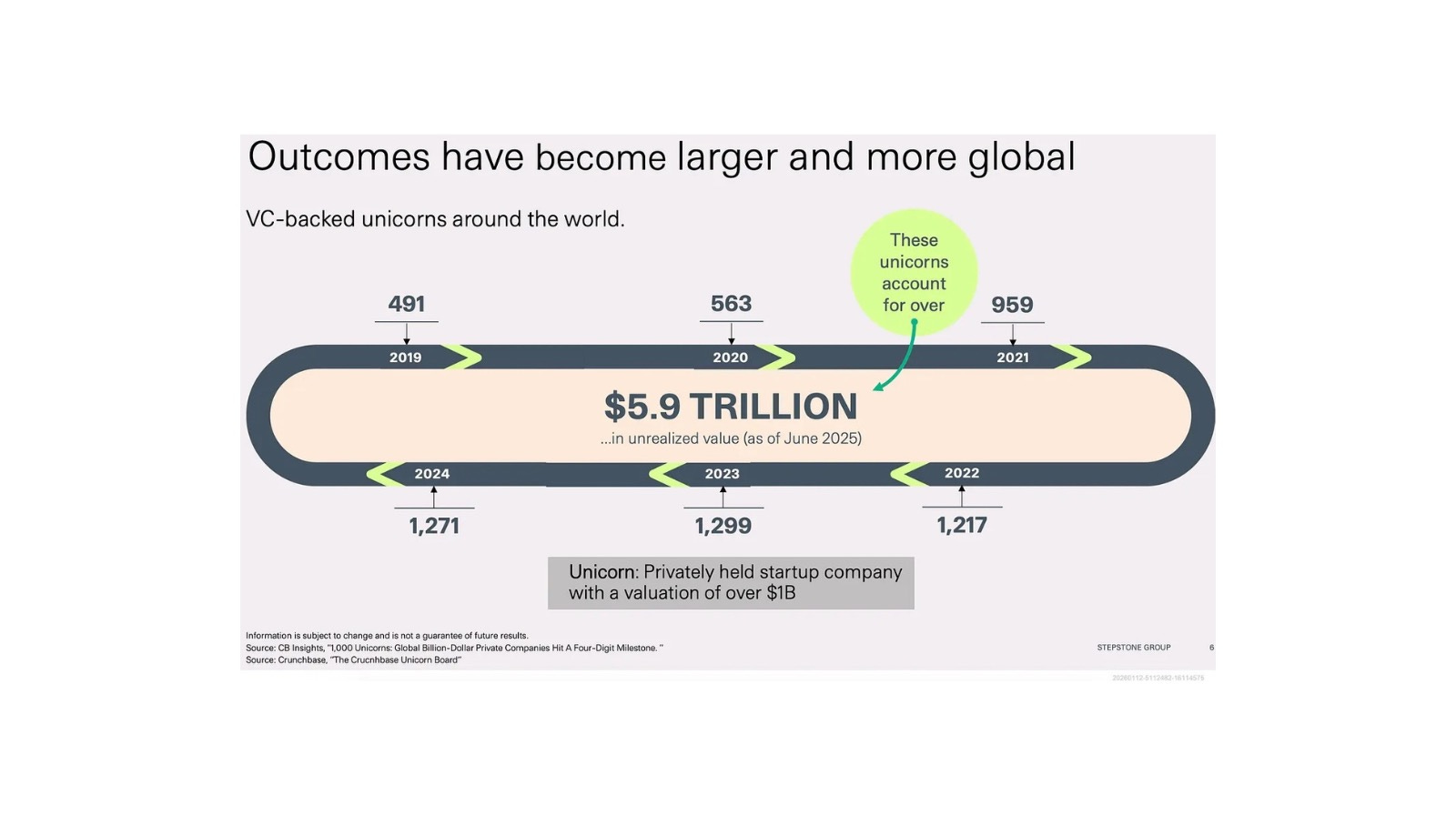 Outcomes have become larger, as a chart from StepStone Private Wealth highlights.