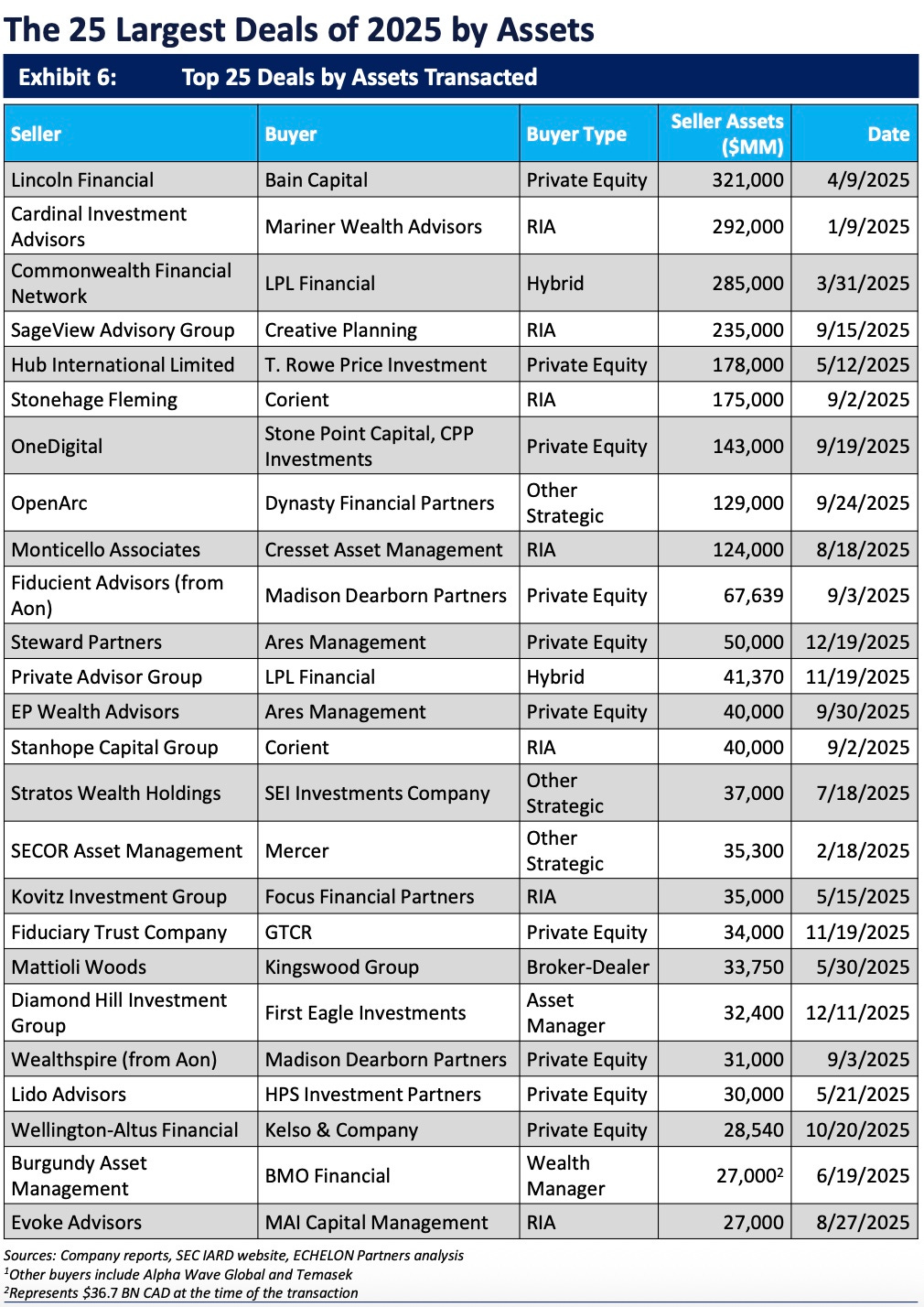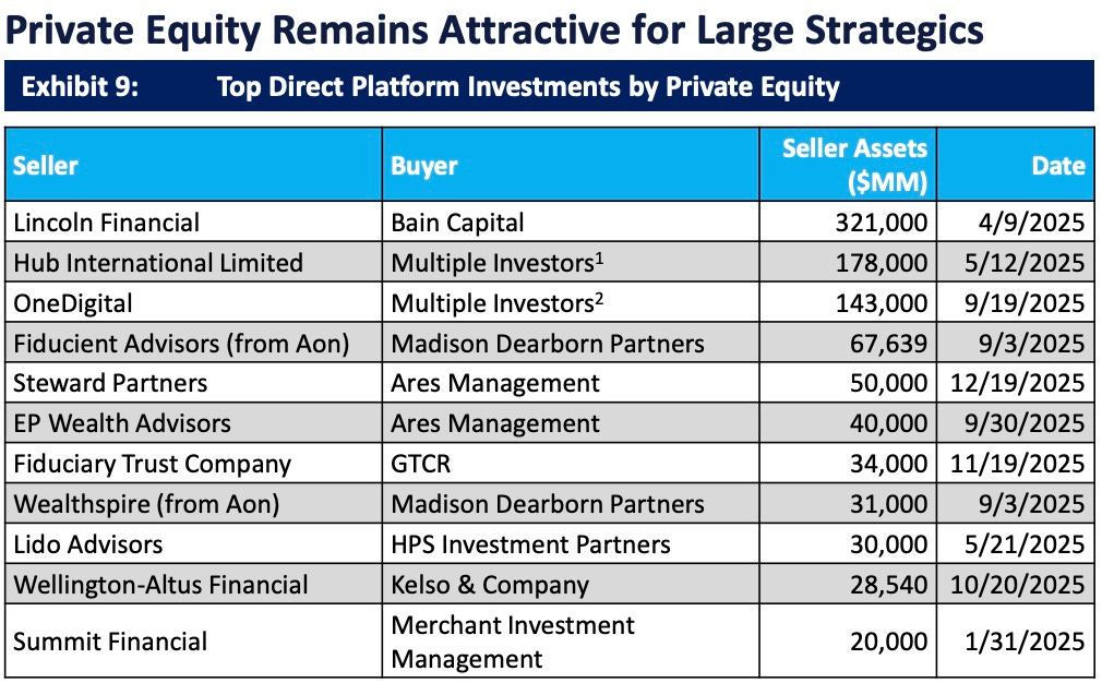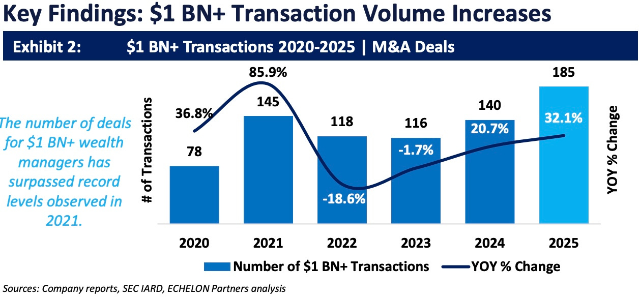 Not only was 2025 a record year for deal volume, but 2025 also saw an uptick in $1B AUM firms consolidating into larger platforms.