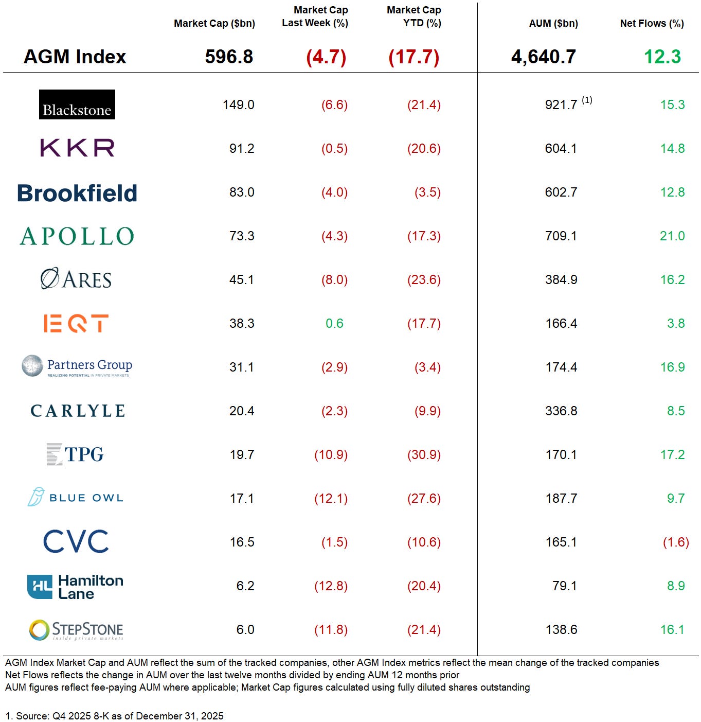 AGM has created an Index to track the leading publicly traded alternative asset managers.