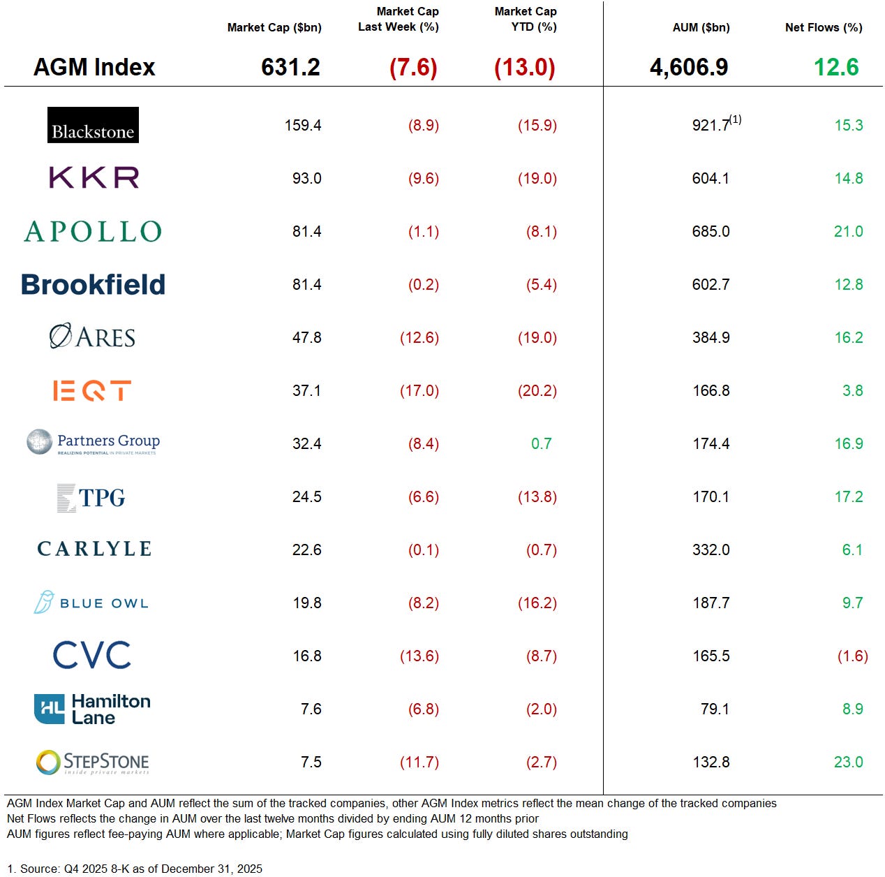 AGM has created an Index to track the leading publicly traded alternative asset managers.