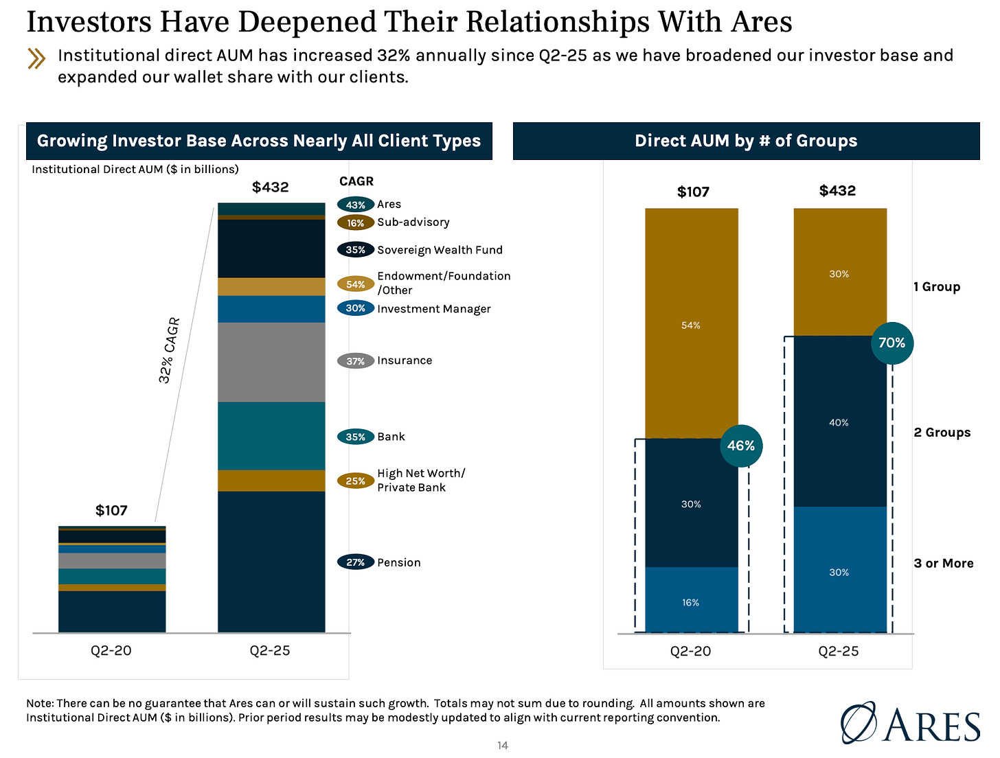 The chart: Institutional investor AUM has increased at 32% CAGR from 2Q20 to 2Q25.