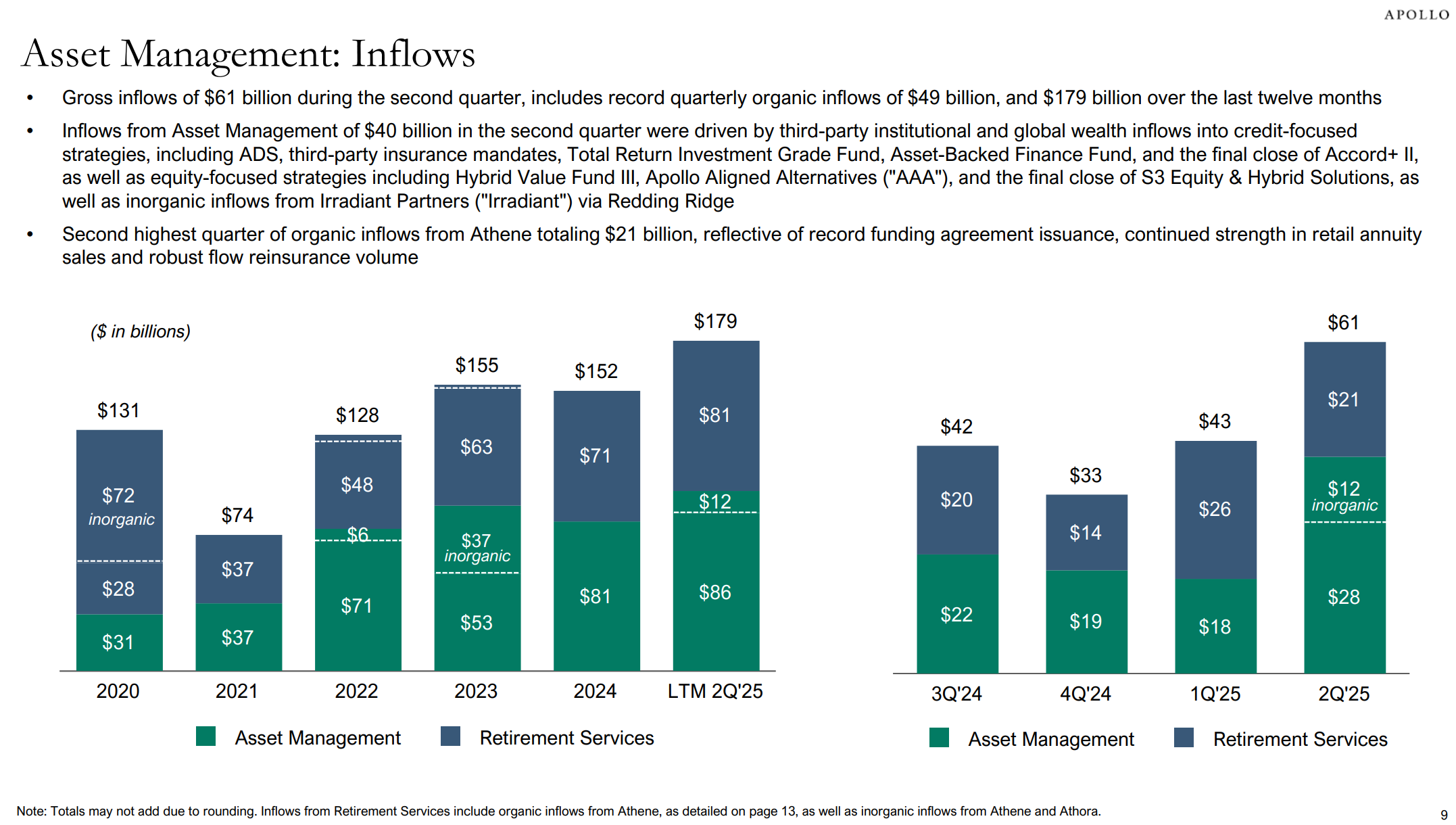 The chart: Apollo achieved record quarterly organic inflows of $49B.
