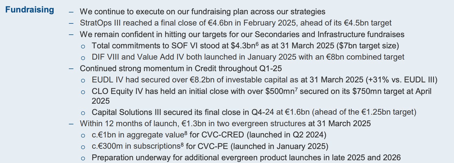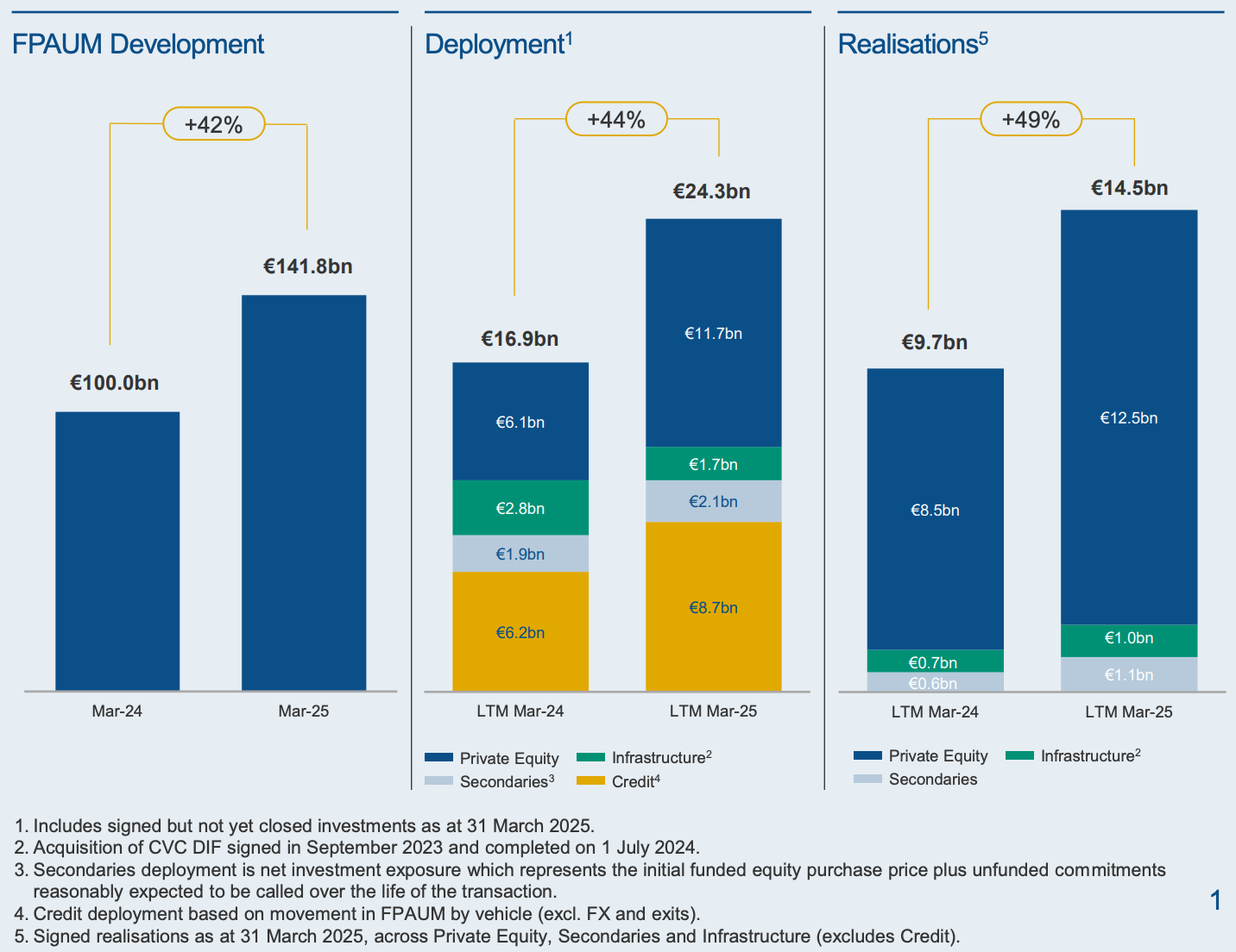 The chart: CVC’s Q1 2025 Activity update highlights the firm’s growth in FPAUM, deployment, and realization activity.