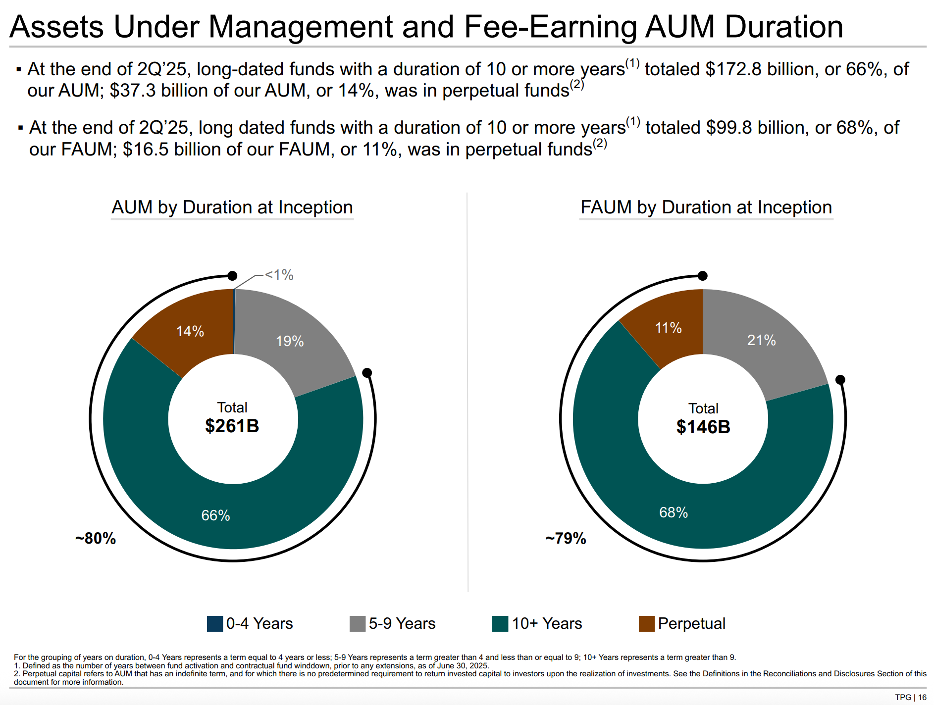 The chart: 80% of TPG’s AUM and 79% of their FPAUM is allocated to capital with duration of 10 or more years.