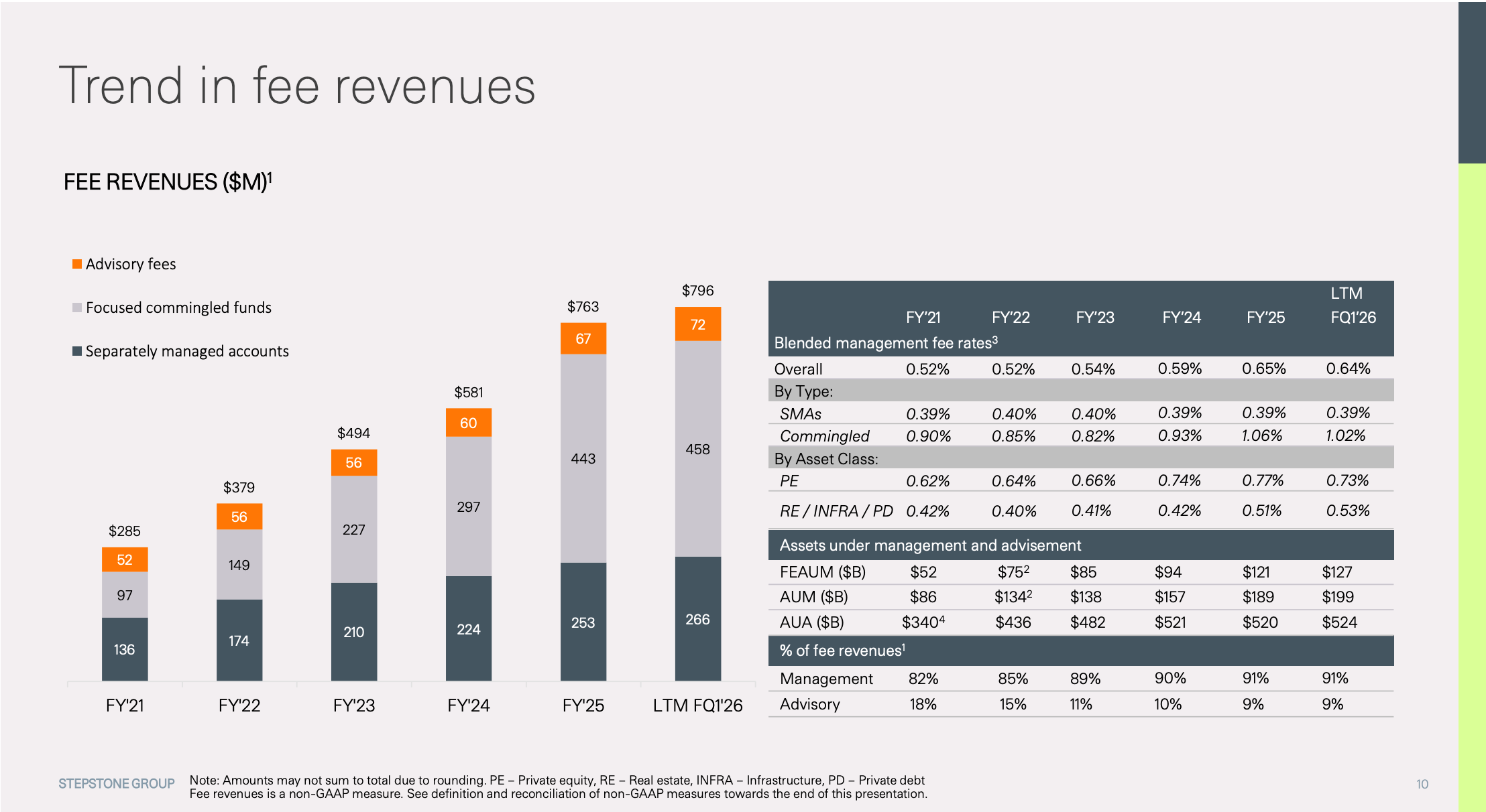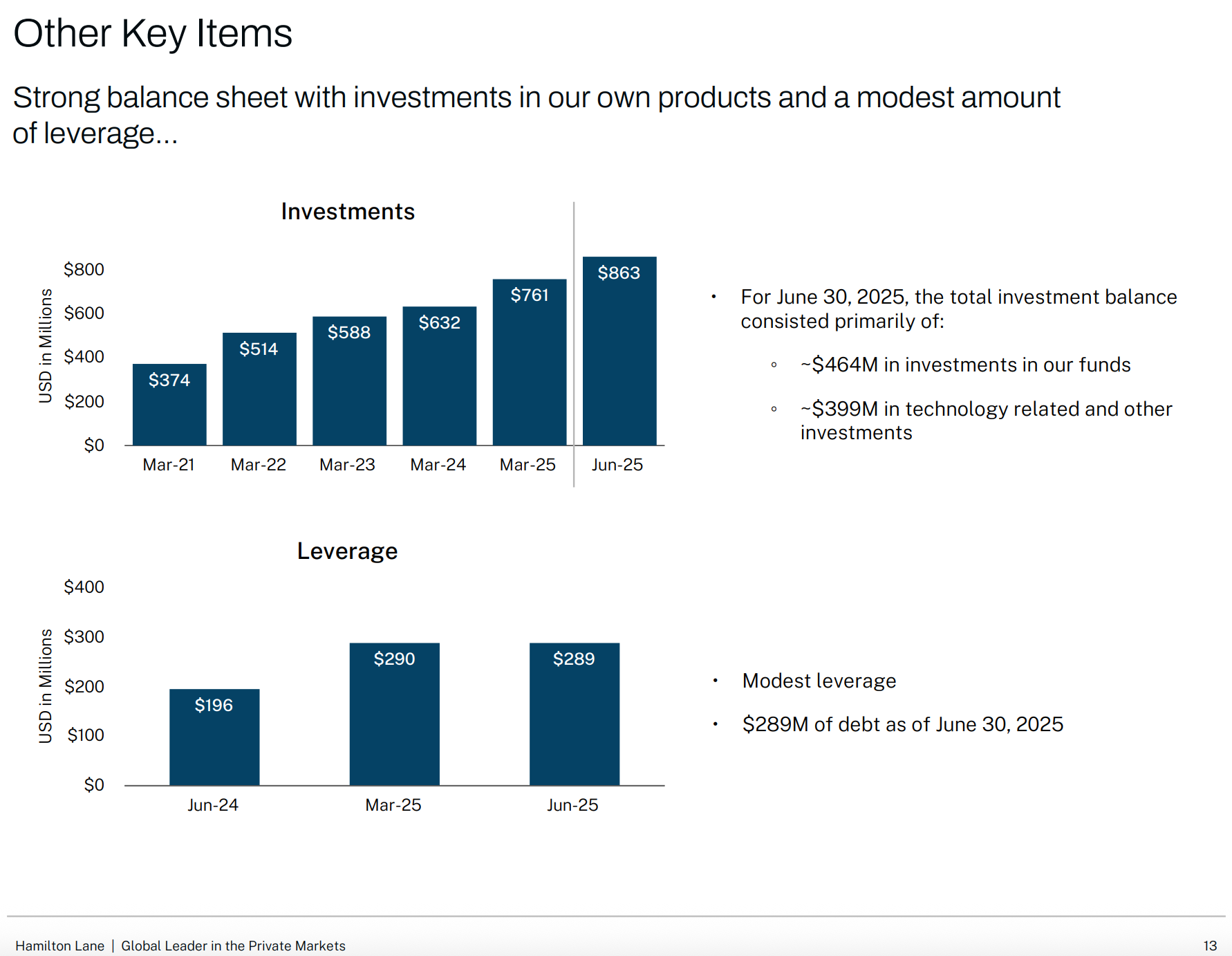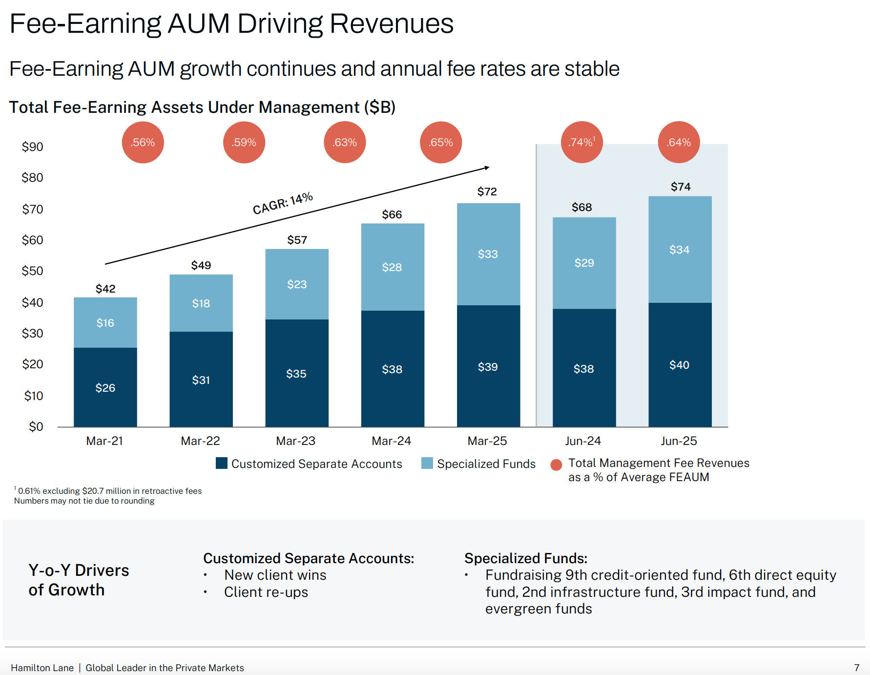 The takeaway: Hamilton Lane’s AUM is growing at almost 2x the rate of its AUA (9% vs. 4% YoY) as it grows its AUM business.