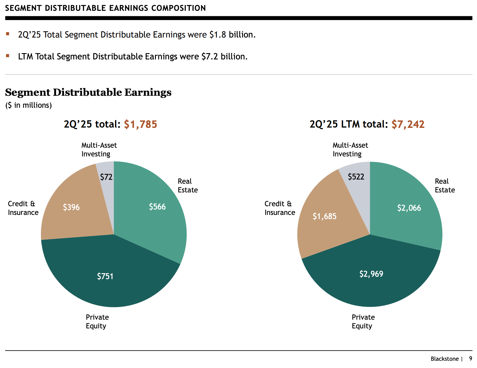 The chart: Blackstone’s distributable earnings by segment in Q2 was $1.785B.