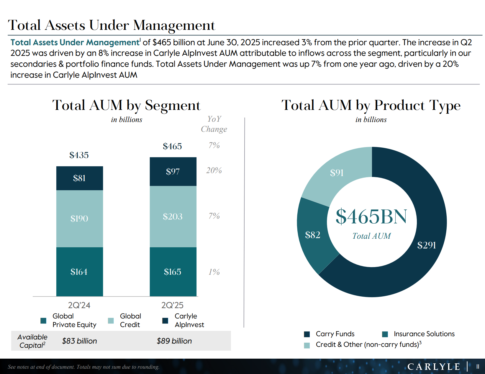 The takeaway: Carlyle AlpInvest (secondaries) AUM inflows drove increase in total AUM.