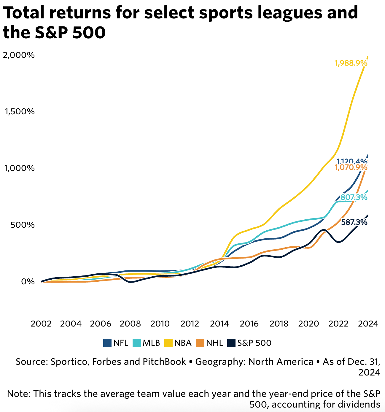 And it looks like there will be room to run for continued sports investing into teams across sports leagues. Many sports leagues still have a meaningful share of teams that don’t yet have private equity backing.