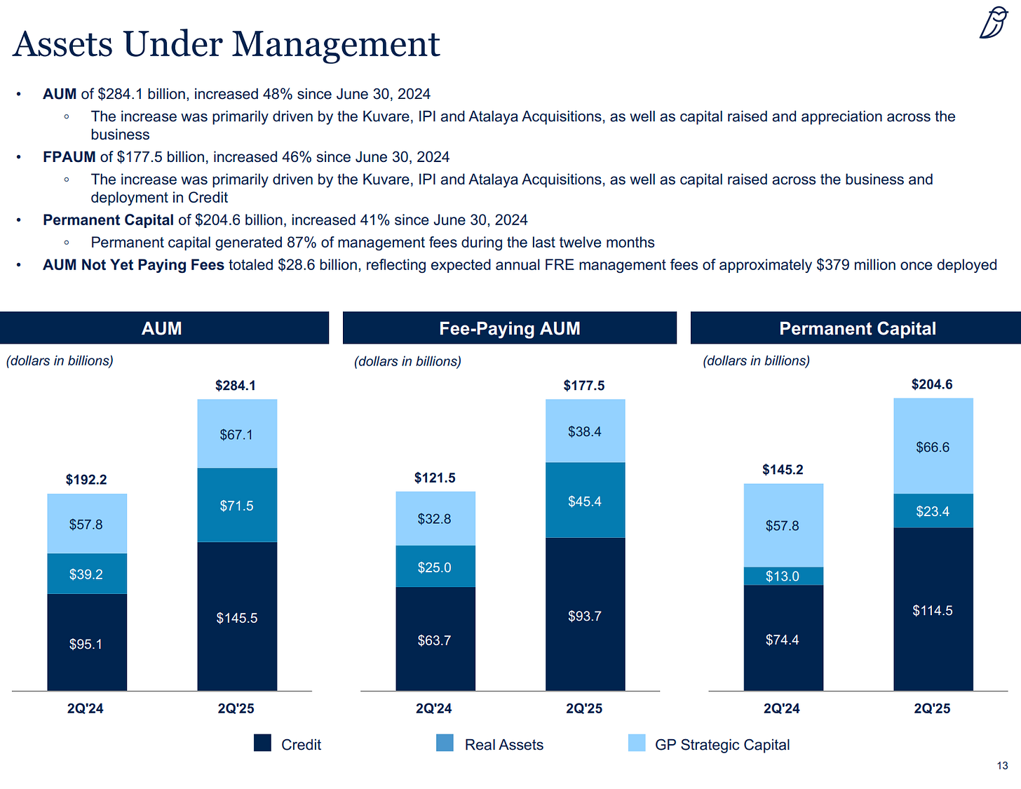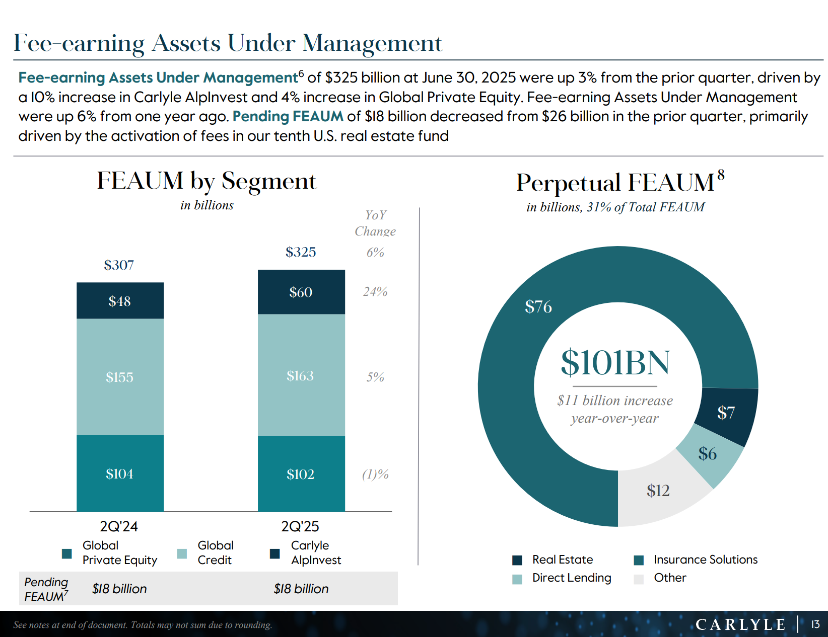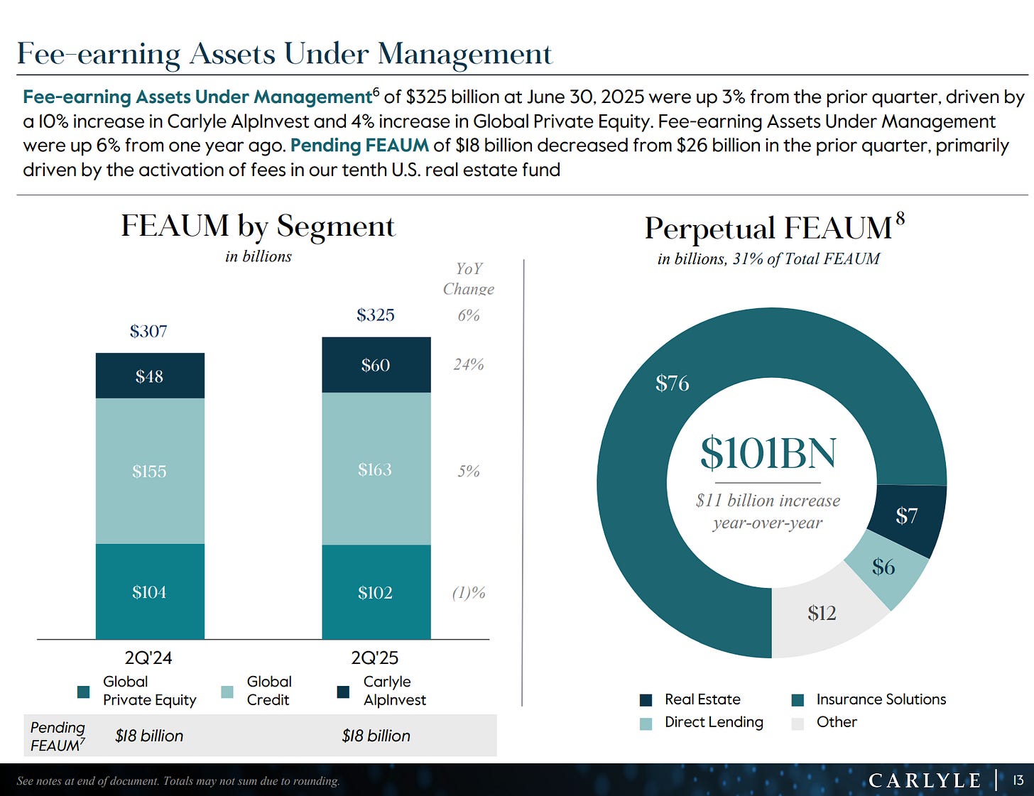 The takeaway: Perpetual Capital AUM, particularly in Credit & Insurance, grew meaningfully over the past year. Fee-Earning Perpetual Capital AUM now represents 47% of FEAUM.