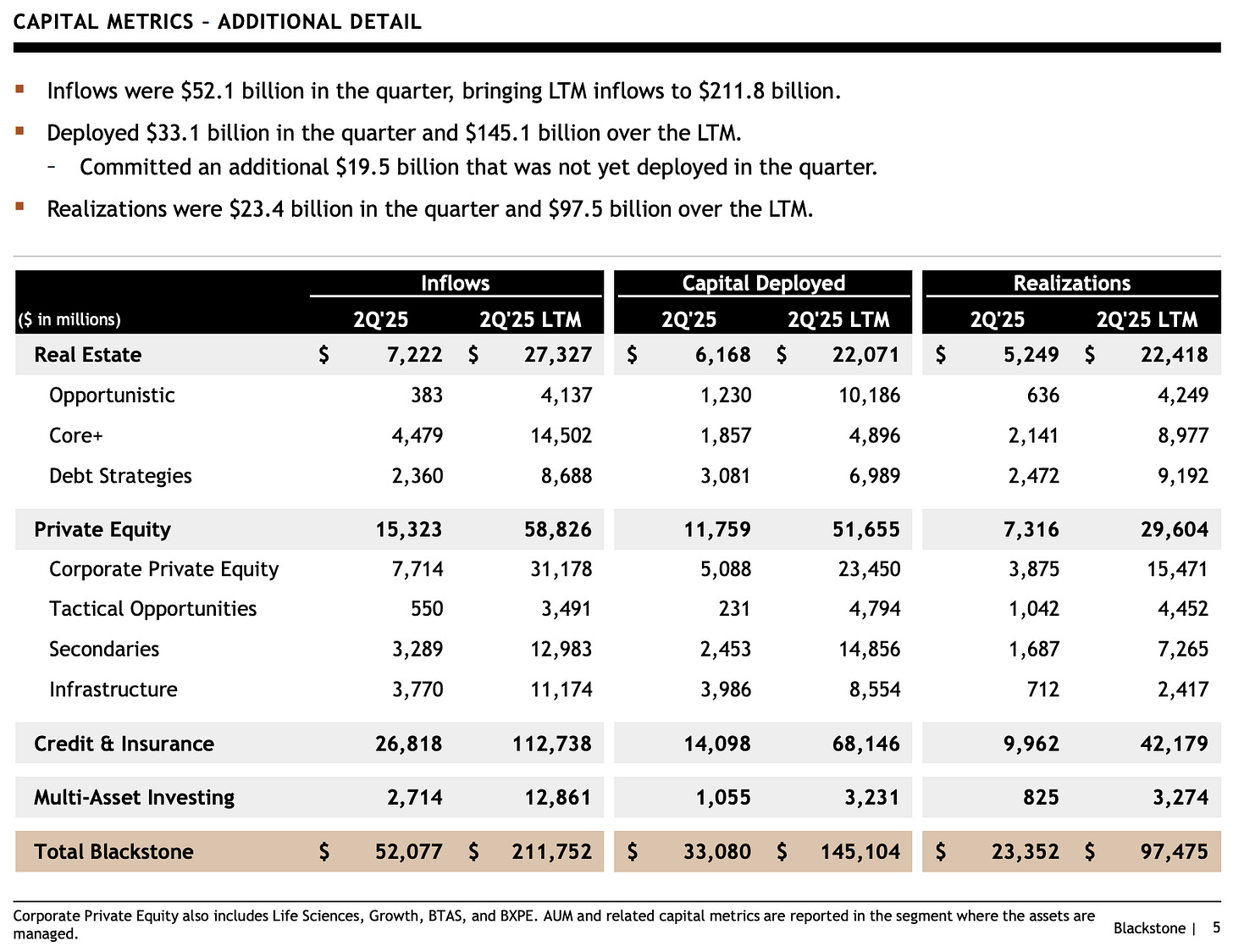 The chart: Blackstone had $52.1B of inflows in Q2, bringing LTM inflows to $211.8B. They had $23.4B of realizations in Q2 and $97.5B of LTM realizations.