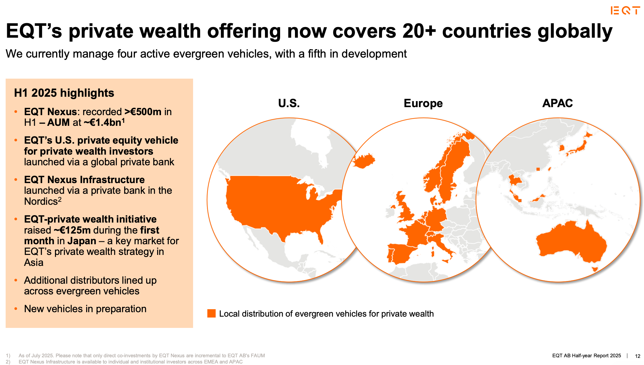 The chart: EQT’s private wealth offering is now in 20 countries globally and EQT Nexus has over €1.4B AUM.