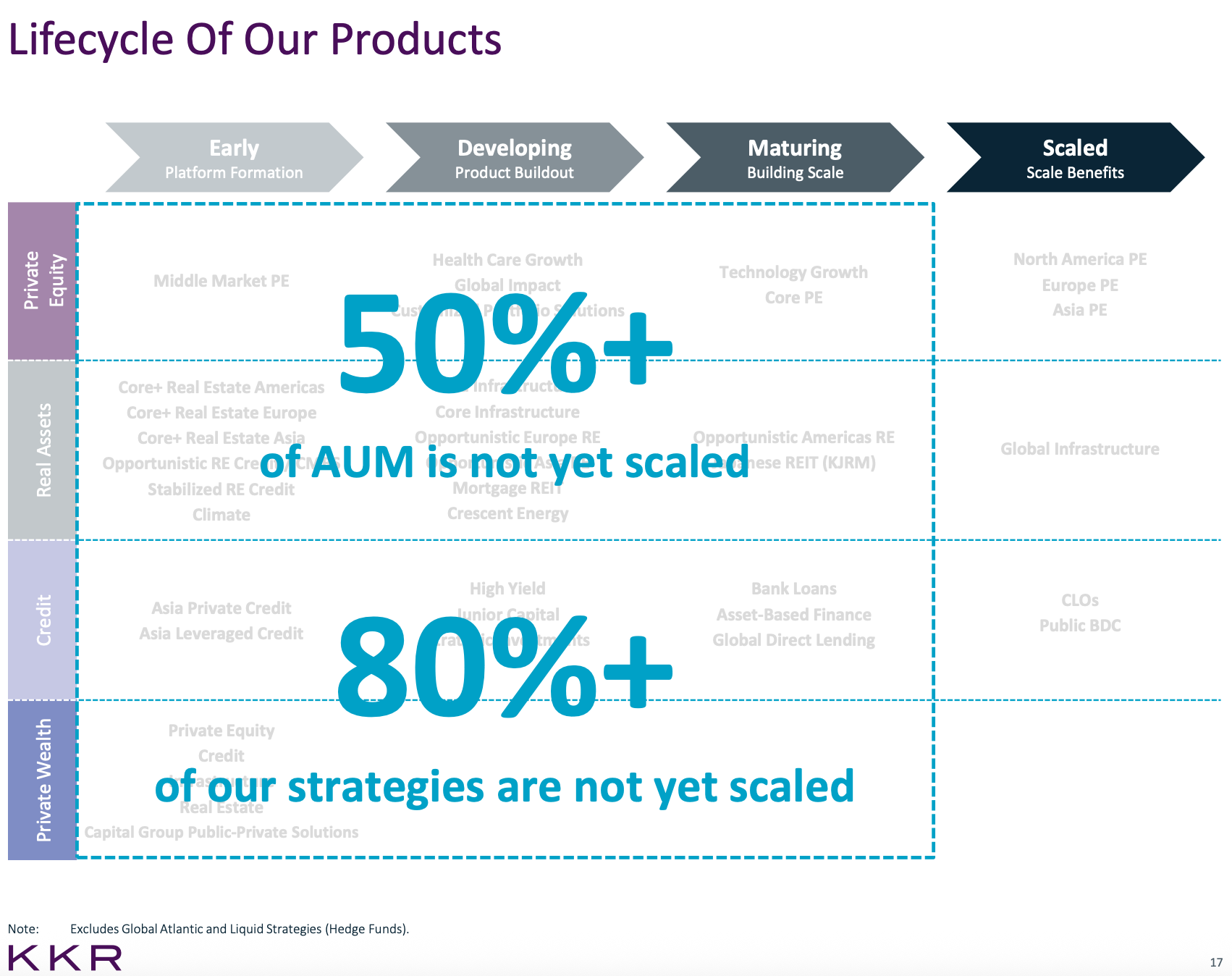 The takeaway: KKR believes that 50%+ of its AUM and 80% of its strategies are not yet scaled?