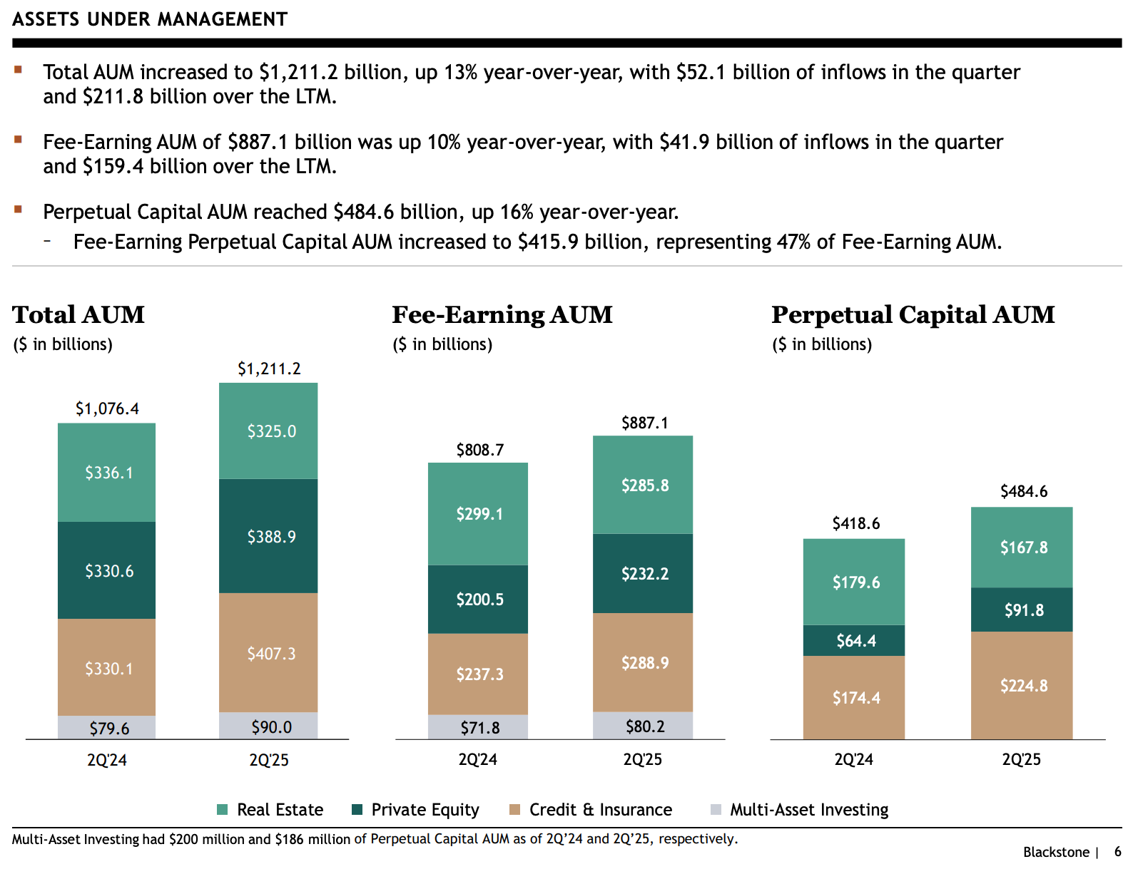 The chart: Blackstone’s total AUM increased 13% YoY, with Perpetual Capital growing 16% YoY to $484.6B.