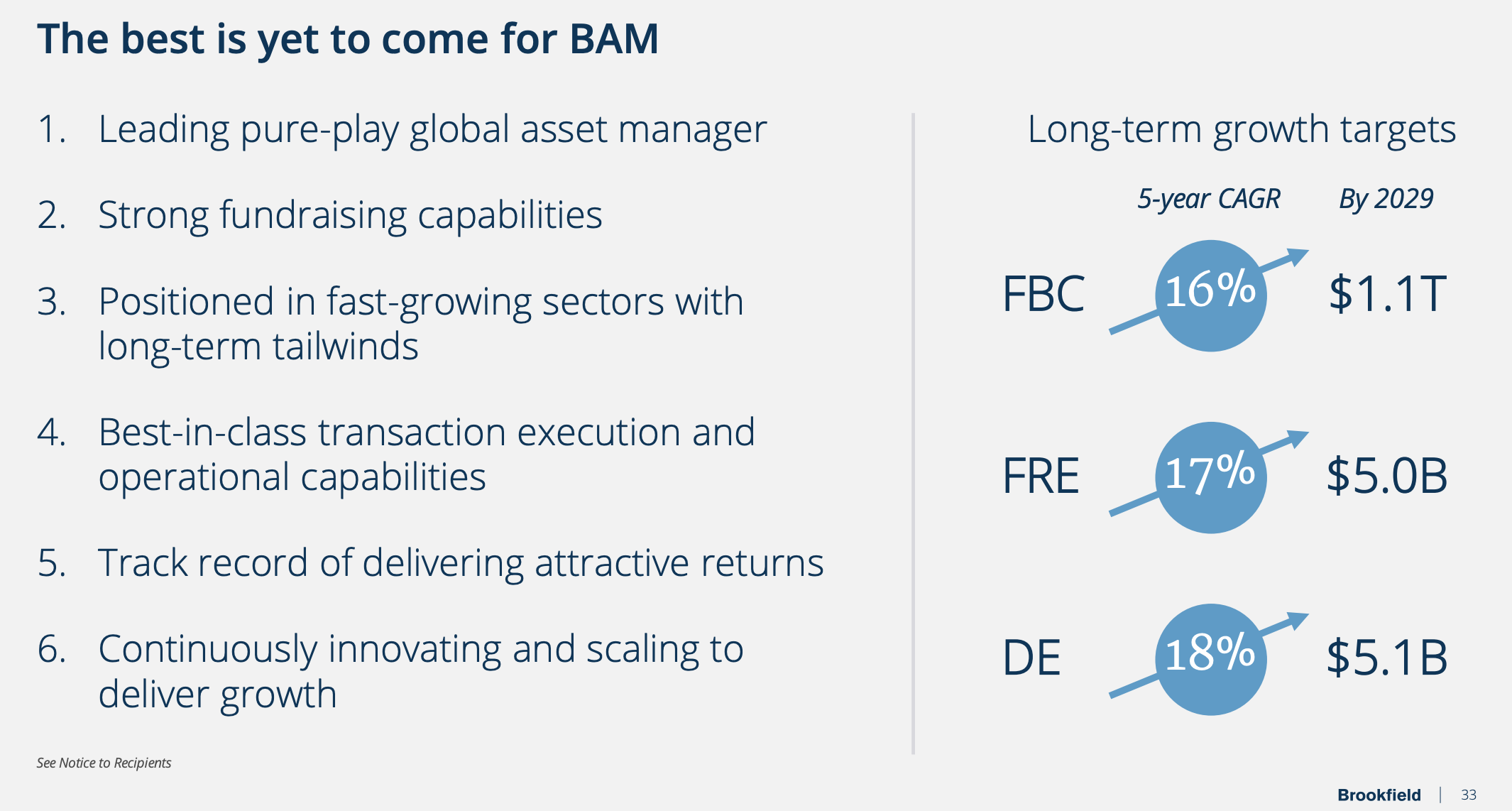 The chart: Brookfield expects to grow to over $1.1T in fee-bearing capital by 2029.