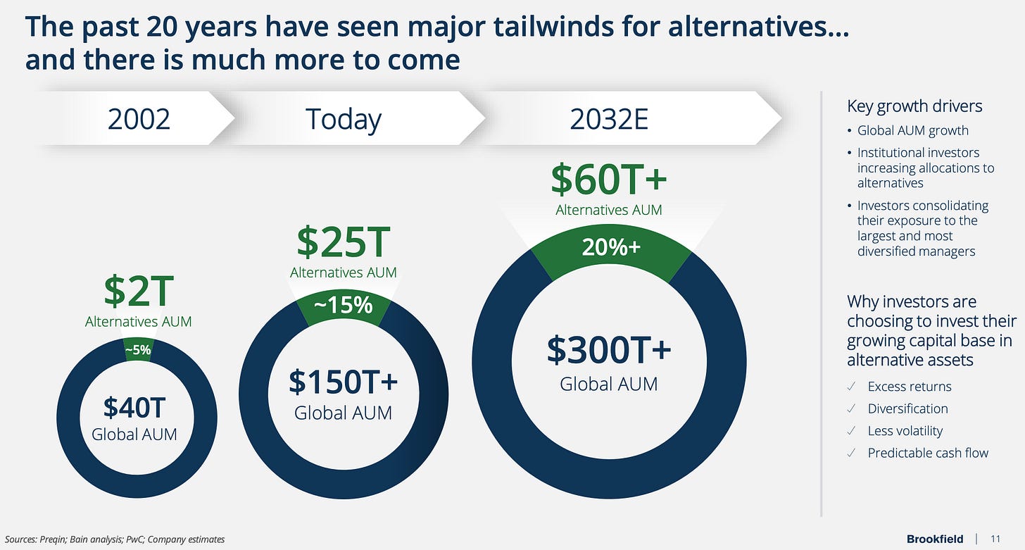 The takeaway: Brookfield projects private markets to more than double in the next seven years, topping $60T of AUM (relative to $300T of global AUM).