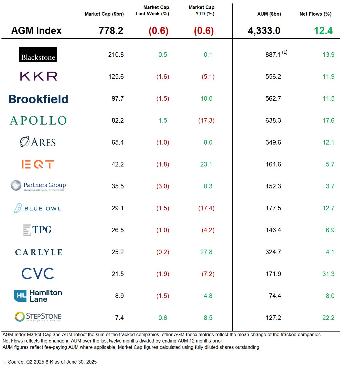 AGM has created an Index to track the leading publicly traded alternative asset managers.